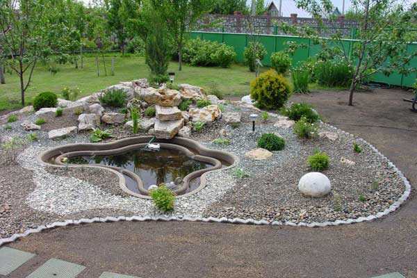 An excellent option for land with a marshy island. If it was not possible to drain it, you can turn this drawback into a beautiful rock garden. It remains to choose the right plants, dig a compact pit and surround it with pebbles, sand and stones.