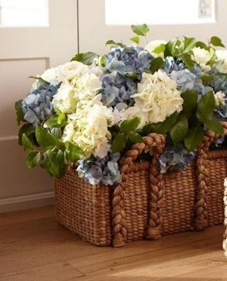 This option is also used in large rooms. The baskets contain not only standard bouquets, but also climbing plants.