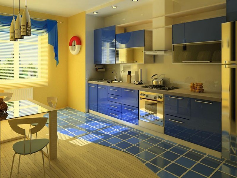 A rich dark blue color is suitable for a kitchen if it is well lit by the sun. You can paint the walls cornflower blue if the room is large. Be sure to bring a bright spot to brighten up the interior.