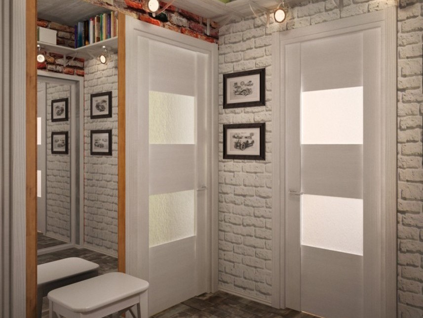 Loft-style hallway interior design, choice of materials and furniture