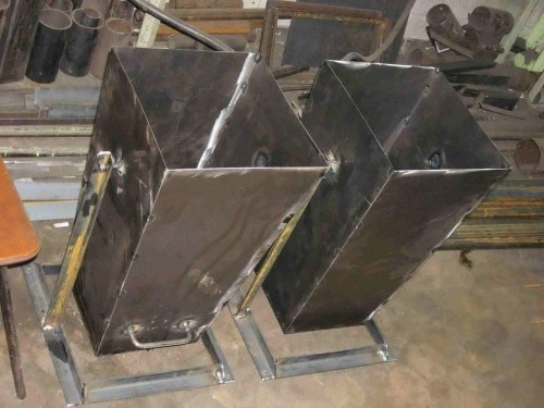 The sheet metal container is much easier to make. A welding machine is required for welding. To weld a container, take sheets with a thickness of 1.2 or 1.5 millimeters.