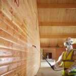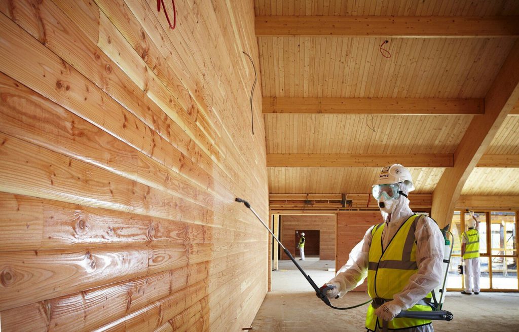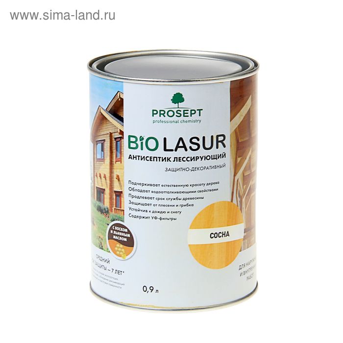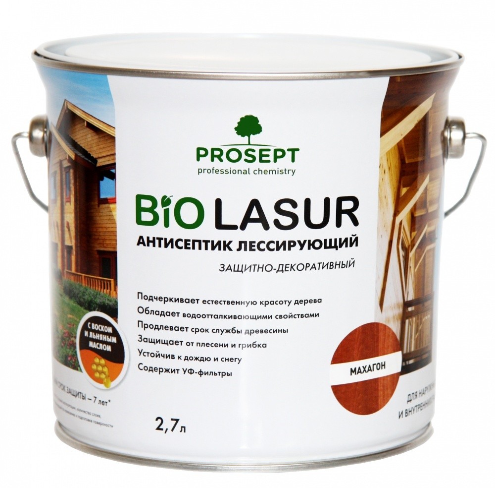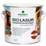 The tree after felling must be treated with an antiseptic. This helps protect the material from rotting or mold. Antiseptic solutions are applied with a spray, paying special attention to the contact points of the logs. BiO LASUR by PROSEPT is a topcoat with a decorative effect.
