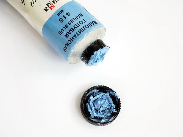 The paint is dissolved in water and applied to the wood in a thin layer. The gouache dries from 30 minutes to 3 hours. The image is slightly whitish (pale white) due to the blending of white.