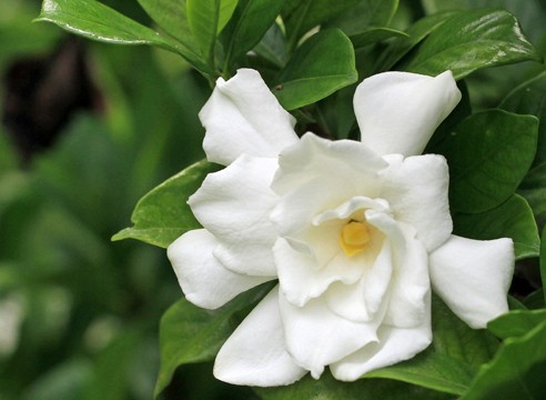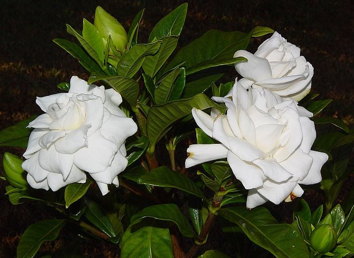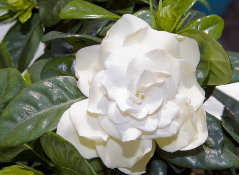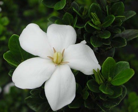 Variety of jasmine gardenia with large white flowers. One of the most popular among plant breeders.