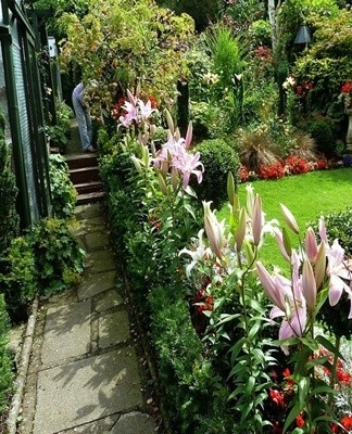 In a modern dacha there is a green lawn that needs to be decorated with something. Sometimes it is combined with conifers and shrubs. In this case, small lilies should be planted along the paths. Their color should be contrasting and favorably stand out against the background of the grass. White lilies look elegant against the background of evergreen shrubs.
