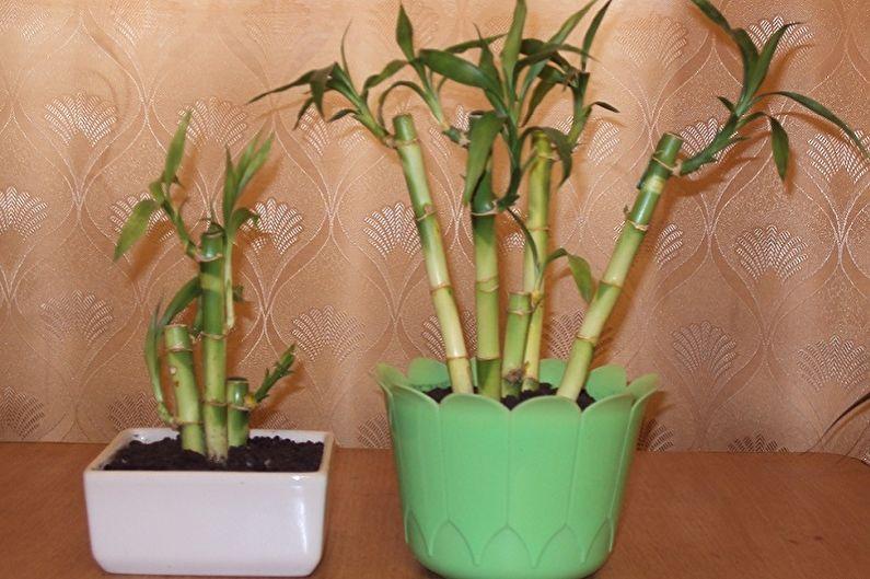 Indoor bamboo is transplanted in April or May.Bamboo should be planted in a pot with the root ends resting on the drain. After pouring the soil, it is lightly pressed so that there are no air cavities inside. The transplanted dracaena is watered abundantly.
