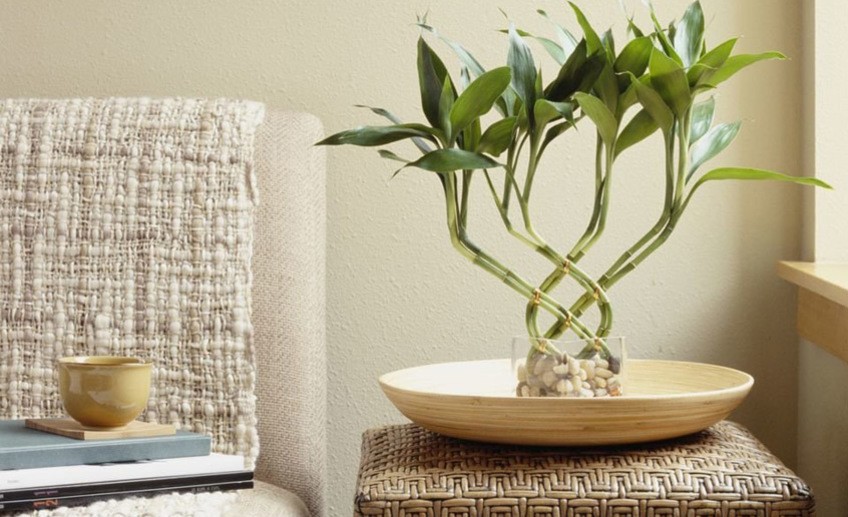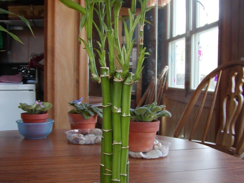 The pot is placed so that an intense, but diffused light falls on it. You cannot keep bamboo in a draft.