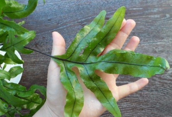 This fern has thin stems, in the middle of which leaves with palmate complexes are formed.