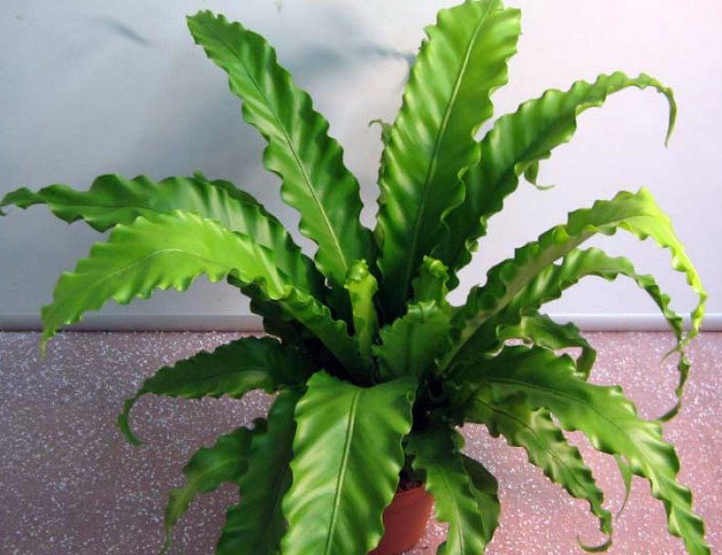 This fern has another name - kostenets. In the nesting asplenium, unlike other varieties of culture, the leaf plates are solid, corrugated.