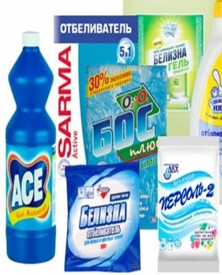 "White" is the most common chlorine bleach. With its help, whiteness is returned to cotton linen, linen, coarse calico: