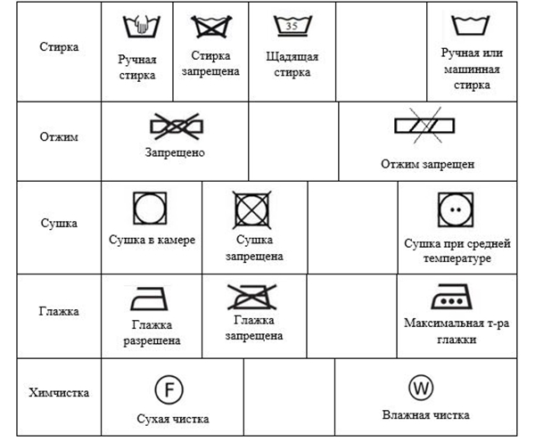 It is not so difficult to decipher the designations on the clothes. There are 5 symbols in total: