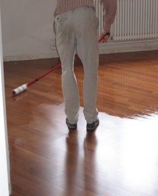 - They thoroughly clean the floor, removing dirt and removing old polish with the help of special products.